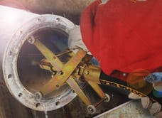 Работает по схожему принципу с гидродинамикой. На специальную форсунку с крутящимся молотом подаётся давление воды от 150 до 300 бар. Молот раскручивается, разбивает бетон и вымывает его из трубы. Требуется высокая квалификация мастера, так как есть риск повреждения трубы.