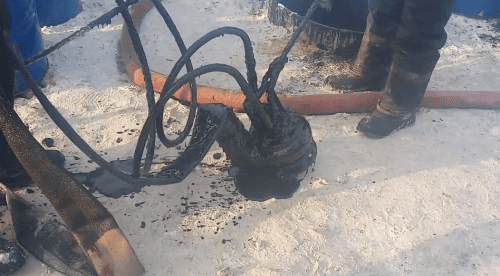 Откачали нефтешлам гидравлической помпой. В процессе работы возникали трудности связанные с густотой смеси. Добавляли специальный химический реагент для разжижения.