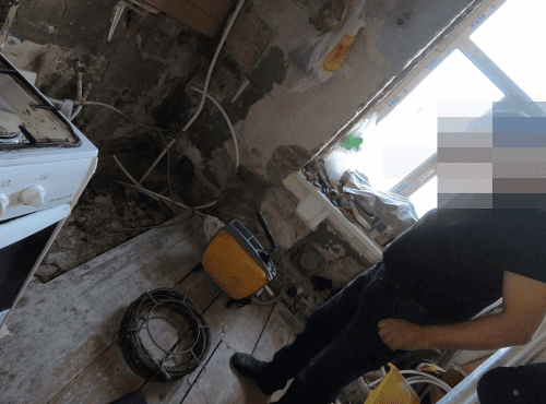 Заказчик обратился с просьбой прочистить все чугунные трубы в квартире, на стадии ремонта. С задачей справились, хоть и с приключениями ))).