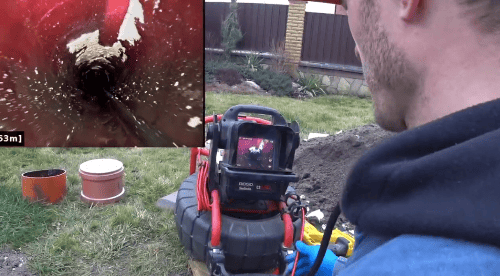 Видеодиагностика обнаружила пробитый участок трубы. Провели раскопки и заменили испорченный участок